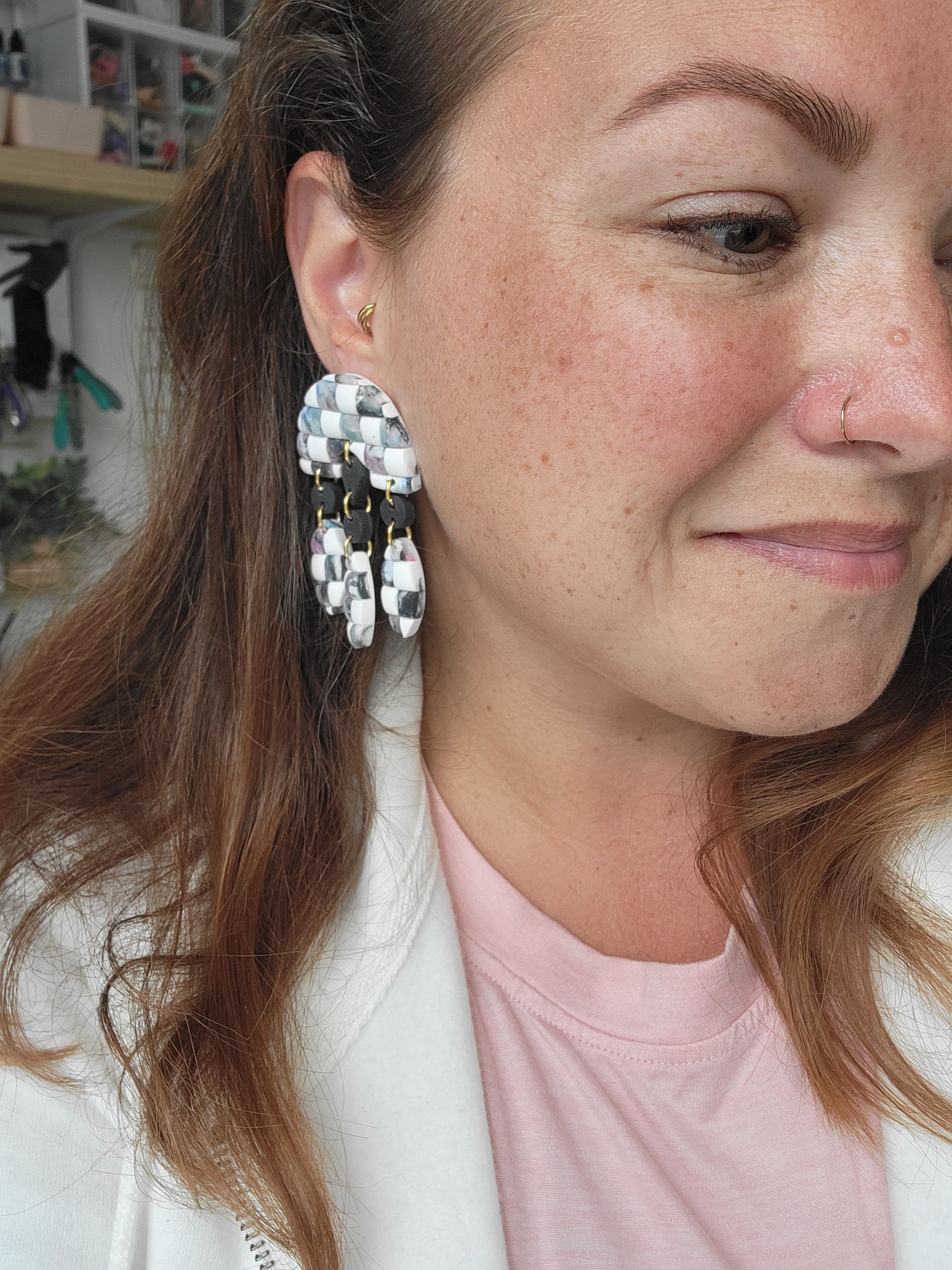 Most of our jewelry is handmade and made to order. They are lightweight and completed with hypoallergenic, nickel-free metals.